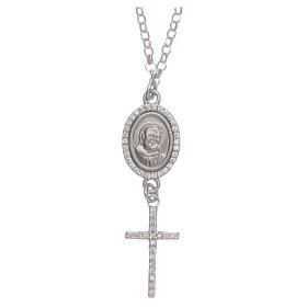 Collar necklace white with cross and Saint Pio medal in 925 sterling silver