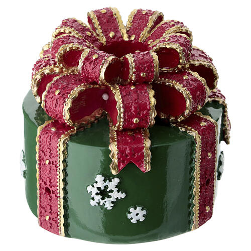 Christmas candle holder for 0.8-inch diameter candles, crafted in resin in the shape of a gift box.