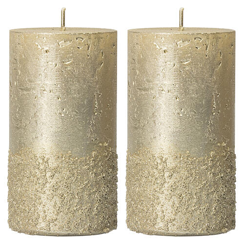 Christmas candles, champagne-coloured, set of 2, 170x70 mm. Set of 2 Christmas candles of champagne-coloured paraffin with bottom part decorated with glitter, made in Germany by a specialised company.