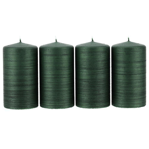 Deep green candles with satin effect, set of 4, 130x70 mm. Set of four satin green Christmas candles perfect for home decoration or for an Advent wreath.