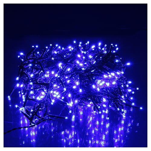 Christmas lights green wire, 400 blue LEDs flash control unit 8 m.