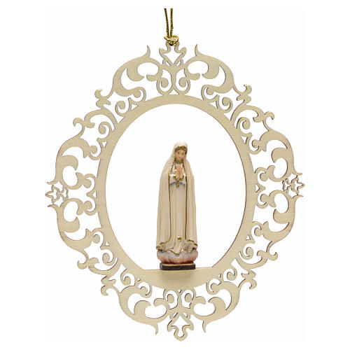 Christmas decor depicting Our Lady of Fatima made of carved wood. Wooden Christmas decor hand painted and carved in Val Gardena Italy. This Christmas tree decoration is 15 cm high (5.91 in).