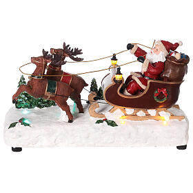 Christmas village reindeer sleigh Santa Claus LED lights music 20x25x15 cm