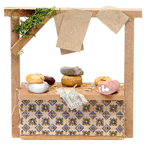 Nativity meat and cheese stall in wax, measuring 10.5x11x4cm.