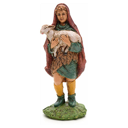 Nativity figurine, shepherd holding lamb in arms measuring 10cm (3,94in).