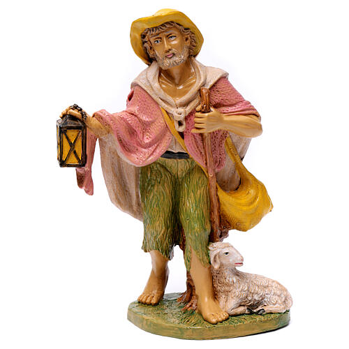 Shepherd with lantern for 30 cm Nativity Scene. PVC figurine painted by Italian artisans.