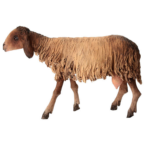 Nativity Scene figurine, white and black sheep made by the Italian artist Angela Tripi. This figurine depicts a sheep and it is suitable for a Nativity Scene with standing characters 30 cm tall.