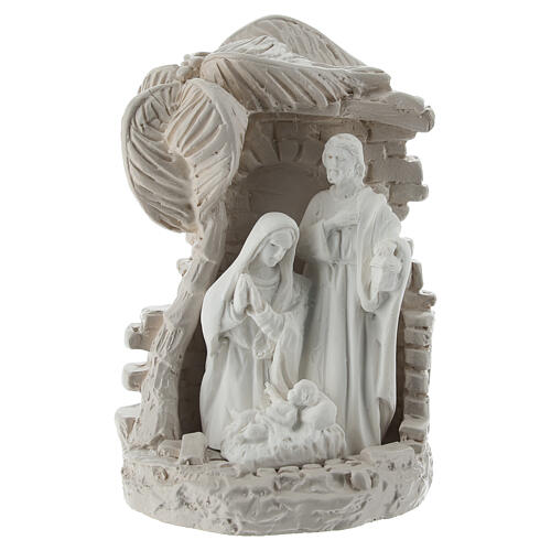 White and taupe resin Nativity relief with stylised stable, 4x2x2 in.