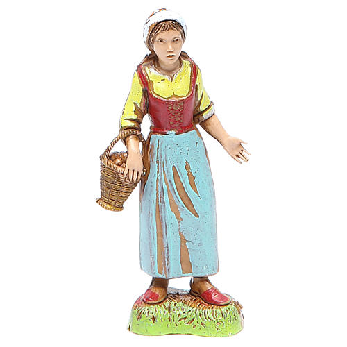 Shepherdess with basket, classic style for nativities of 10cm by Moranduzzo.