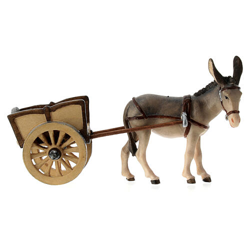 - Donkey and cart in painted wood, Kostner Nativity scene 9.5 cm