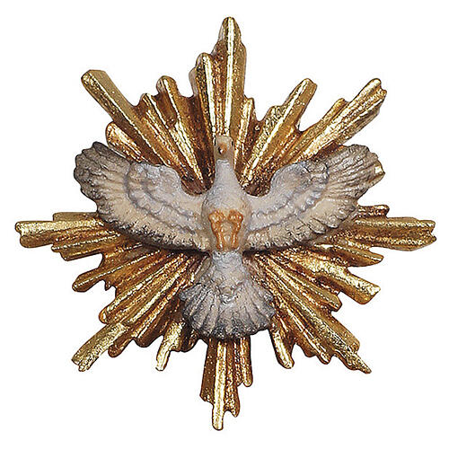 Dove with rays of light for Heimatland Nativity Scene of 12 cm, Val Gardena painted wood. Accessory for a Nativity Scene of 9.5 cm average height, made and painted by hand by experienced craftmen of the Val Gardena (Italy).