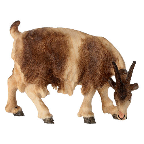 Goat eating with head turned right in painted wood, Kostner Nativity scene 12 cm