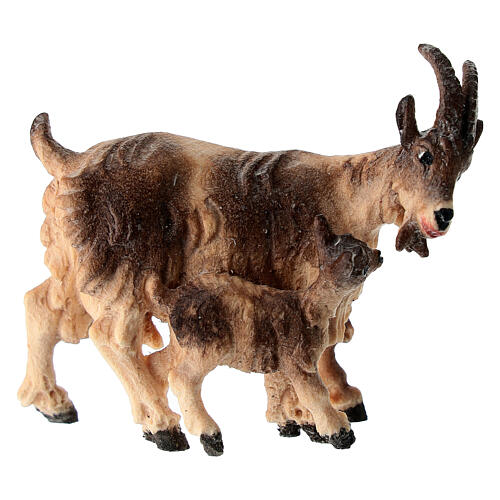 - Goat with kid of painted wood for 9.5 cm Heimatland Nativity Scene of Val Gardena