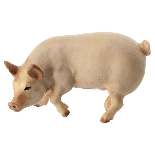 Pig in painted wood for 9 cm Rainell Nativity scene, Val Gardena