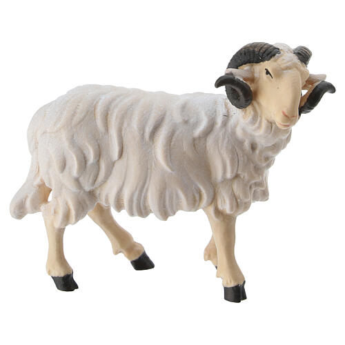 Ram with head turning right, Val Gardena painted wood, 12 cm Mahlknecht Nativity Scene