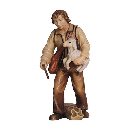 - Shepherd holding a sheep in painted wood for 11 cm Rainell Nativity scene, Val Gardena