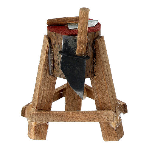 The accessory features a round top base with knives for cutting meat. Ideal for market scenes or kitchens in the Nativity Scene, this counter adds an authentic and functional touch to enrich your setup.