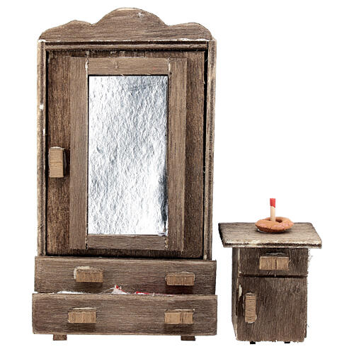 - Furniture set, wooden closet and nightstand for 10 cm Neapolitan Nativity Scene