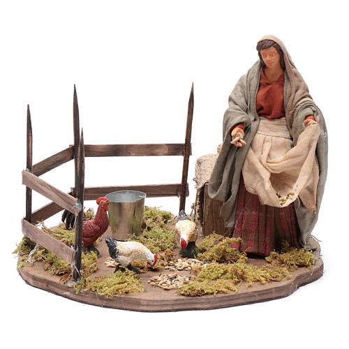 Lady feeding birds, animated Neapolitan Nativity figurine 14cm