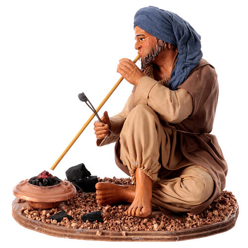 Man blowing a fire figurine 30 cm Neapolitan nativity.