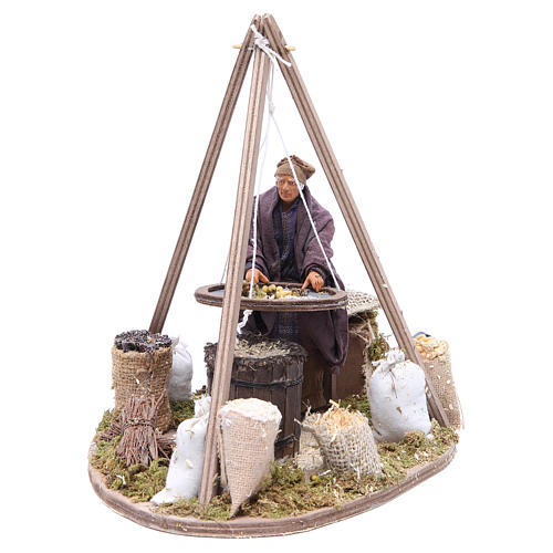 Man with sieve for animated Neapolitan Nativity, suitable for figurines measuring 14cm.