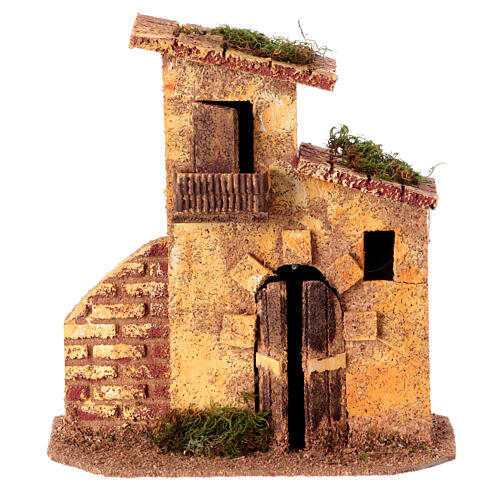 Miniature house with low wall for 6 cm Neapolitan Nativity Scene, 15x15x10 cm. Miniature house for small Nativity Scenes or to place on the back of your setting and create perspective, suitable for characters of 6 cm average height.