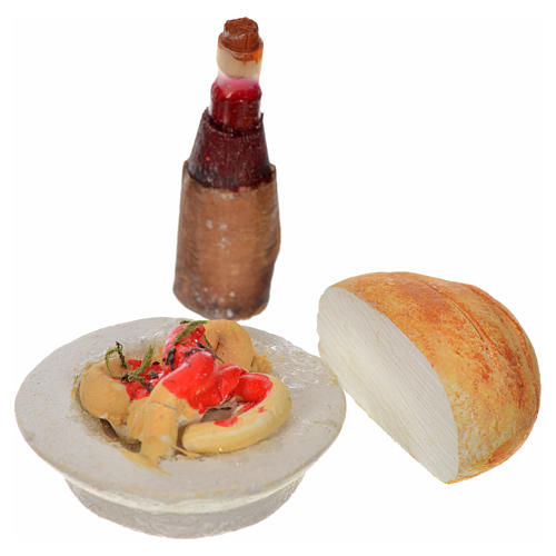 - Neapolitan Nativity scene accessory, plate wine and bread 3 piec