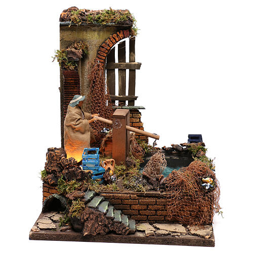 Scene of a fisherman in motion for 12 cm Neapolitan Nativity Scene, 35x30x30 cm