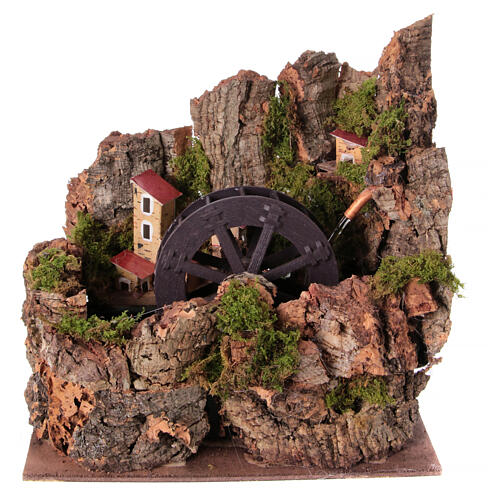 Water mill with village for 10-12 cm Neapolitan Nativity Scene, setting with pump, 25x25x20 cm