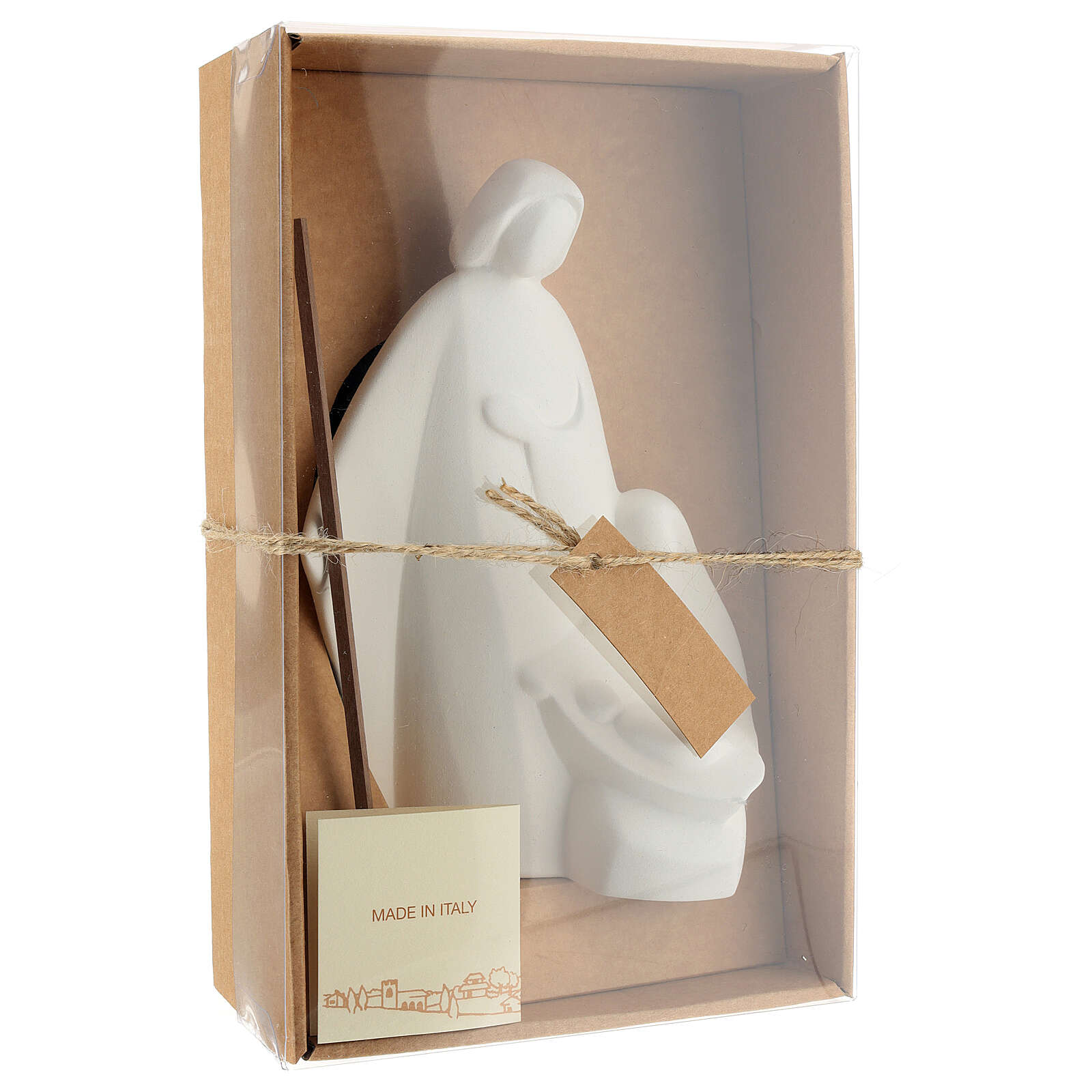 Holy Family Nives low relief sized 15 cm made in fire clay Centro Ave. It is cooked at more than 900°C. It is completely hand finished in order to have pleasant, sober and elegant lines. It is a high quality product, 100% Made in Italy, produced at the clay centre Centro Ceramiche Ave di Loppiano (Florence).