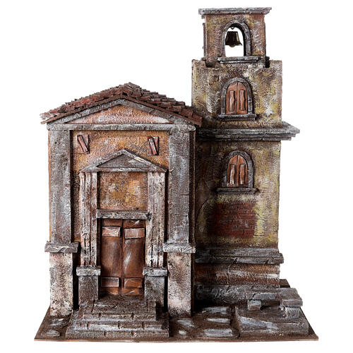 Church with bell tower for Nativity Scene with 12 cm characters 50x45x35 cm