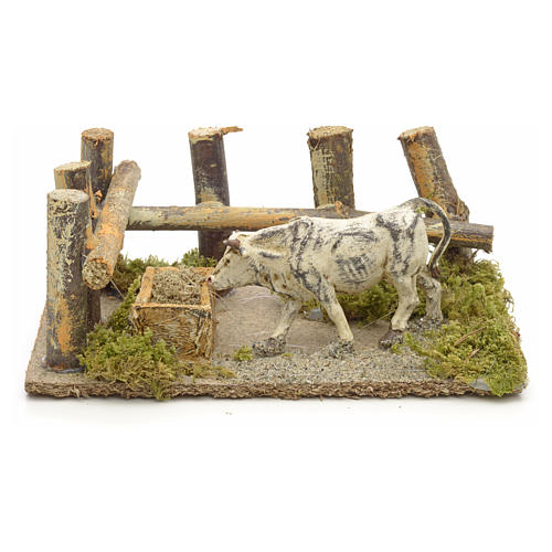 Nativity setting, ox at the manger measuring 10x14x9cm