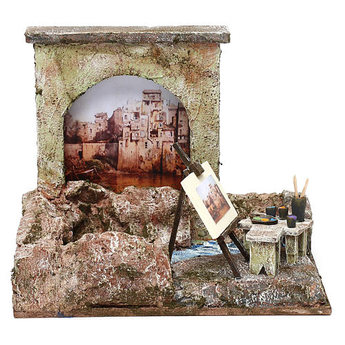 - Street artist setting for 12 cm Nativity scene, 20x25x15 cm