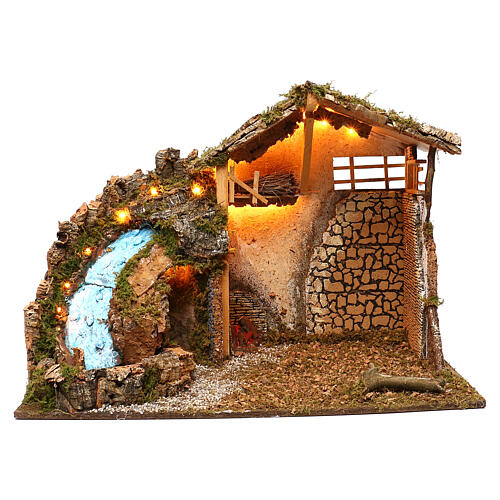 Nativity stable with walls waterfall working pump 40x75x50, 10 cm nativity.