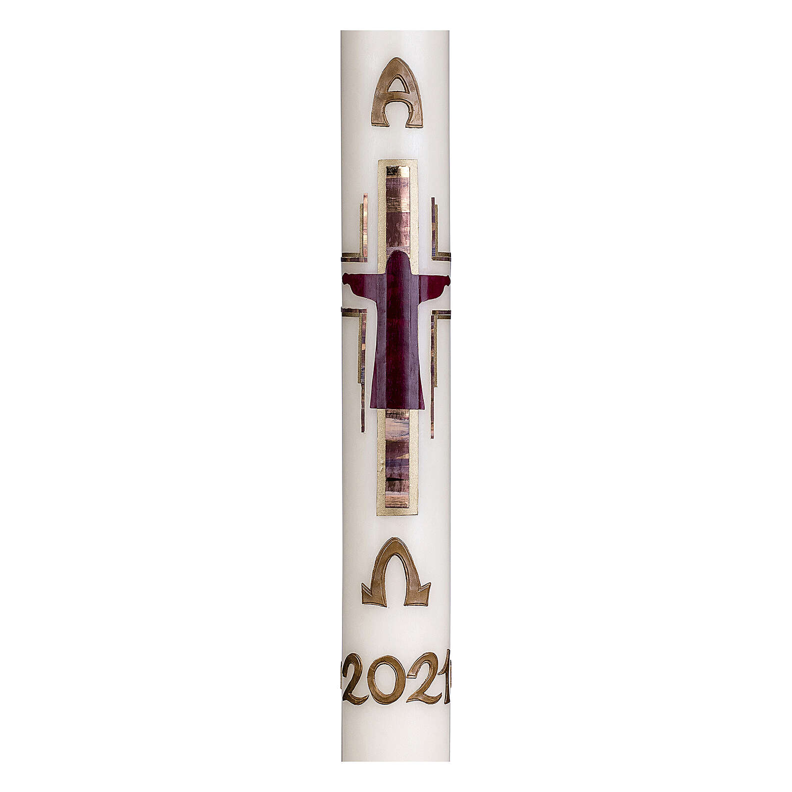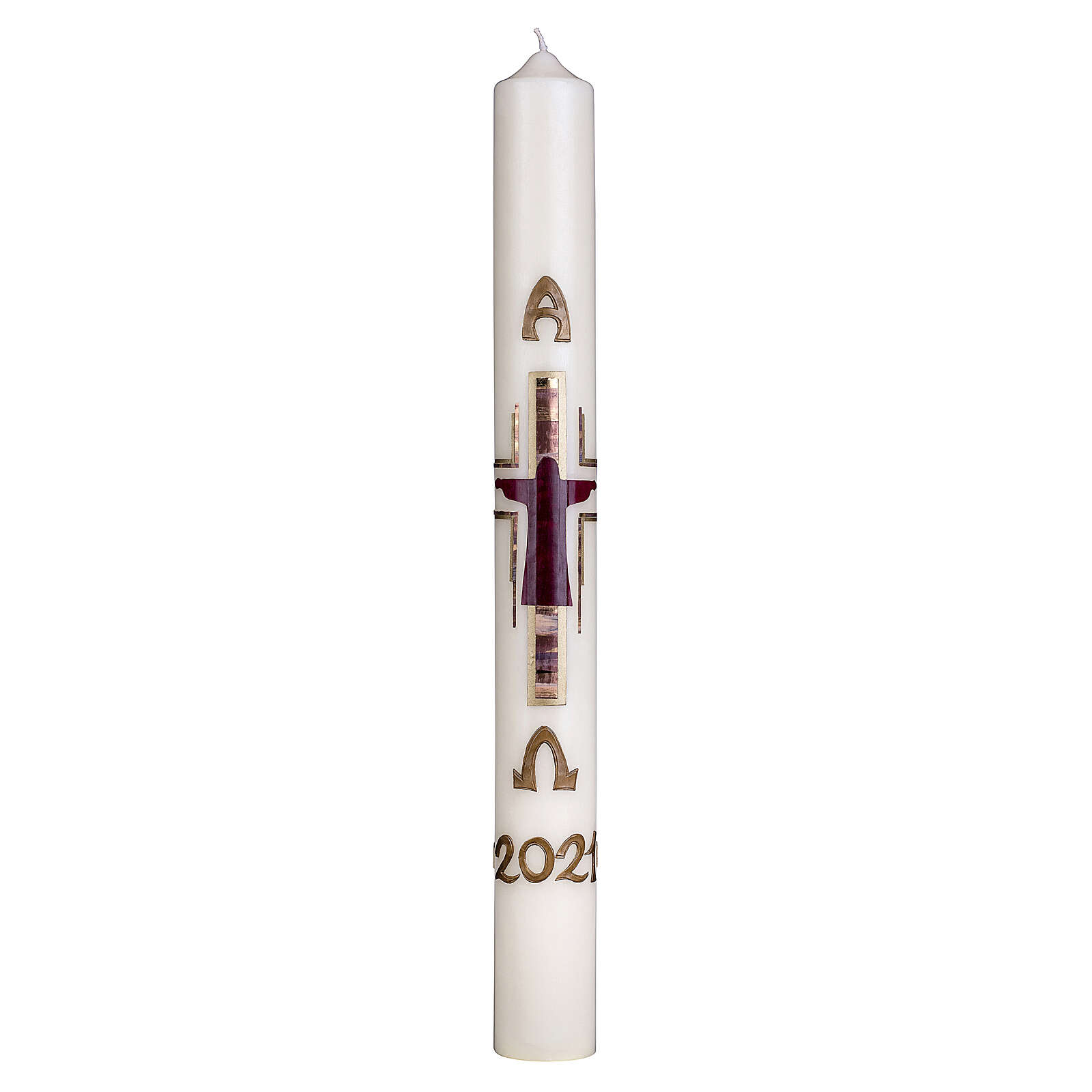 Easter candle with Crucifixion in purple gold 80x8 cm