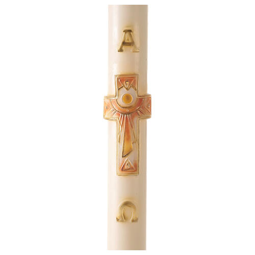 Ivory Easter candle with cross, Alpha and Omega 120x8 cm