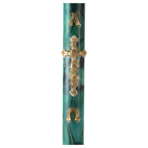 Paschal candle with Alpha, Omega and cross, green marble finish, 120x8 cm