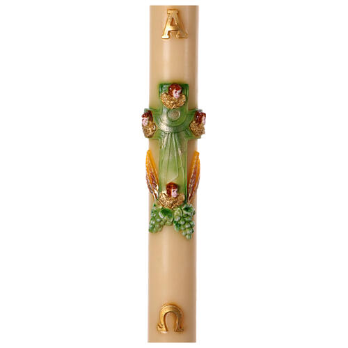 - Paschal candle with green cross with angels, grapes and wheat, 47 in