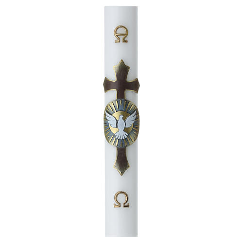 Paschal candle with Holy Spirit on silver cross, 47x3 in.