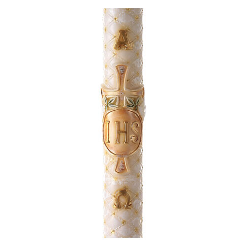 - Paschal candle with matelassé finish, JHS and cross, 120x8 cm