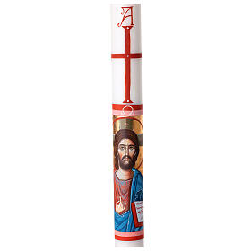 Paschal candle in beeswax with support and red and gold Lamb and cross 8x120cm