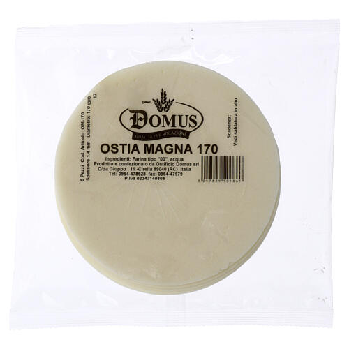 Produced from water and plain wheat flour (type 00) in accordance with the canonical preparation for hosts used in liturgical celebrations.