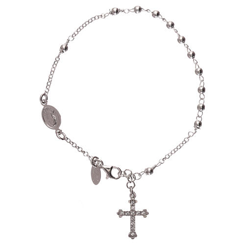 Rosary AMEN Bracelet Charm Cross Pavè silver 925, Rhodium finish