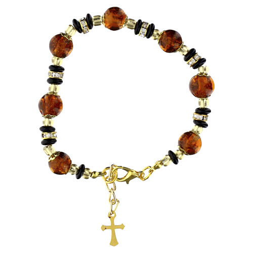 Bracelet with 0.31-inch Murano glass beads, amber and black stone, gold finish