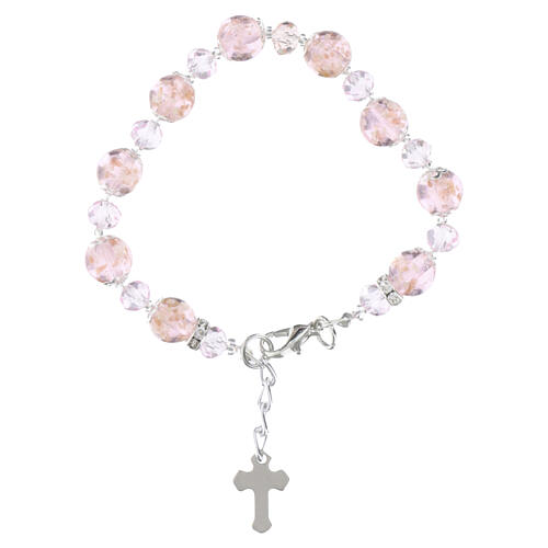 Bracelet with 0.4-inch pink Murano glass beads and 0.2-inch Bohemian crystals, silver finish