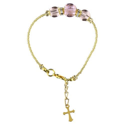 Gold-finish bracelet with 0.2-inch pink Murano glass beads