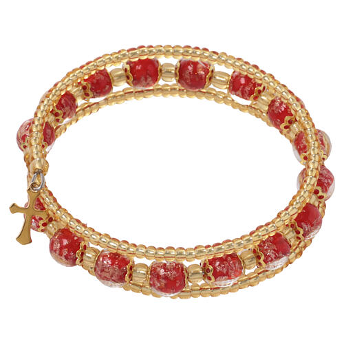 Red Murano glass bracelet with 0.31-inch beads on gold-finish base with cross