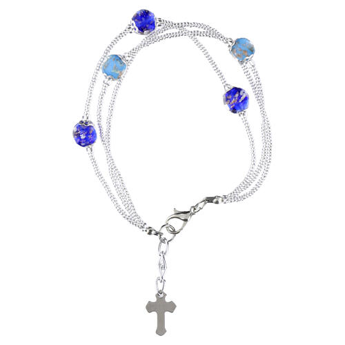 Triple‑wrap bracelet in silver finish with blue and light‑blue Murano glass beads.