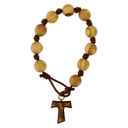 Single decade rosary bracelet with tau cross, knots and 0.4 in Assisi olivewood beads