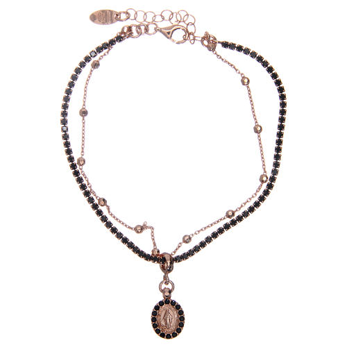 AMEN bracelet in pink 925 silver with black rhinestones and medal with Our Lady of Miracles